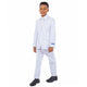 Elevate your young gentleman's style with the Perry Ellis Portfolio Boy's 5pc Solid Suit. This refined set features a single-breasted, two-button jacket with a classic notch lapel and convenient side pockets, paired with a sleek U-neck vest boasting a 4-button closure and two slit pockets. The traditional-length, single-pleat pants complete the ensemble, offering a timeless and polished look. Perfect for weddings, formal events, or any special occasion, this suit ensures your boy will look sharp and feel confident.
